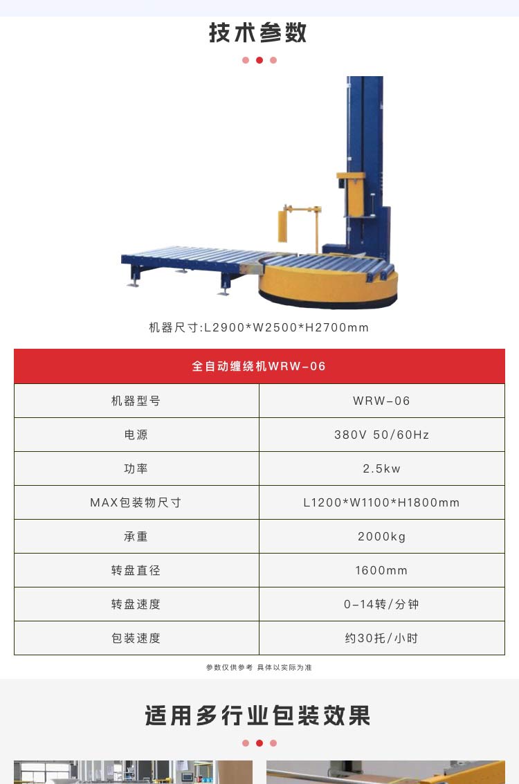 介紹:在線纏繞包裝機是適用流水線作業(yè)的包裝機械,非常適用現(xiàn)代化企業(yè)的自動化包裝的需要,對提高包裝效率、降低勞動強度、利用人力資源,起到非常積極的作用.可配套自動覆膜機,實現(xiàn)裹包.在化工、電子、食品、飲料、造紙等行業(yè)包裝線中得到廣泛應(yīng)用 采用PLC可編程控制器及人機對話觸摸屏; 無人化操作,自動進料、上膜、纏繞、切膜、貼膜、出料;自動警示,自動故障報警等; 操作簡單,性能穩(wěn)定.