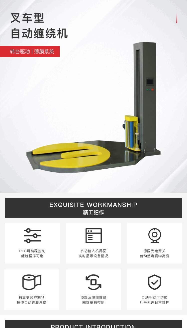 介紹:PLC可編程控制,纏繞程序可選。 人機(jī)界面式文本控制顯示系統(tǒng),實(shí)時(shí)顯示設(shè)備運(yùn)行狀況。 德國(guó)倍加福光電開關(guān)自動(dòng)感測(cè)貨物高度。 纏繞層數(shù)、運(yùn)行速度、薄膜張緊度任意可調(diào),操作方便簡(jiǎn)單。 獨(dú)立變頻控制預(yù)拉伸自動(dòng)送膜系統(tǒng),拉力自由調(diào)整。 頂部及底部纏繞圈數(shù)分別單獨(dú)控制,1-9圈自由調(diào)節(jié)。 自動(dòng)、手動(dòng)可切換,幾乎無(wú)需日常維護(hù)。