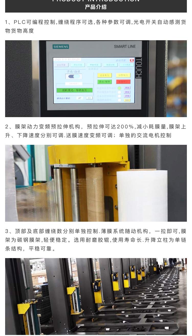 纏繞層數(shù)、運(yùn)行速度、薄膜張緊度任意可調(diào),操作方便簡(jiǎn)單。