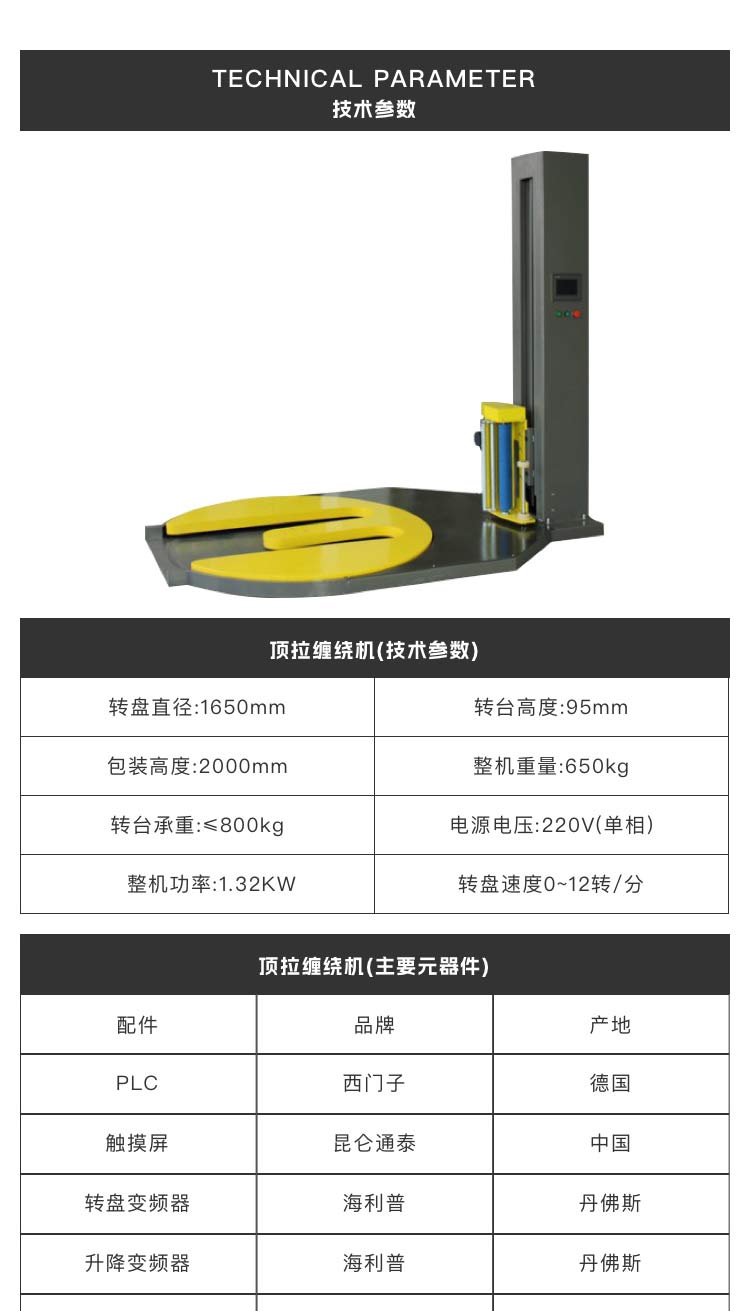 膜架動(dòng)力變頻預(yù)拉伸機(jī)構(gòu),預(yù)拉伸可達(dá)200%,減小耗膜量。