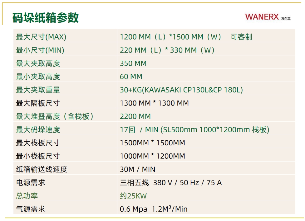 介紹:平板紙箱自動碼垛系統(tǒng)是萬爾芯的主打產品,其可根據客戶的場地需求、產能需求、及其他需求量身定制。 碼垛系統(tǒng)一般是由:機器人、疊包機、供棧機、鋪隔板機和四面拍齊機組成。其系統(tǒng)優(yōu)勢在于疊包和碼垛綜合到16-18次/分鐘。 產品別稱:紙箱碼垛機器人、紙箱碼垛機器、紙箱碼垛設備、全自動紙箱碼垛機、機器人紙箱碼垛、自動流水線紙箱碼垛機