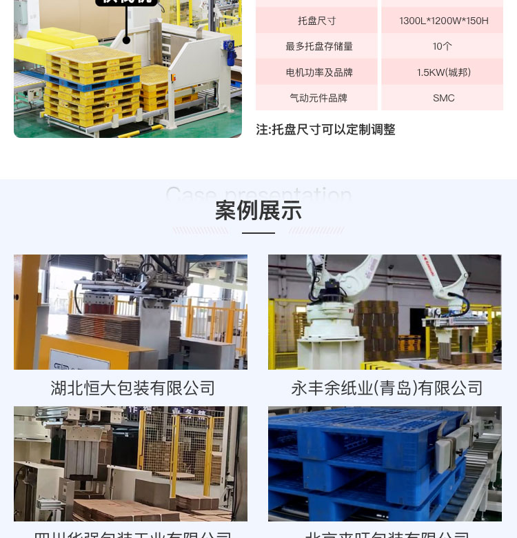 產(chǎn)品簡(jiǎn)述:供棧機(jī)則是棧板分離機(jī)結(jié)構(gòu)控制棧板掉落在鏈板輸送線上,分離機(jī)構(gòu)成可根據(jù)棧板不同尺寸自動(dòng)調(diào)整寬度,棧板分離后,經(jīng)由鏈板線輸送至碼垛機(jī)器人處。