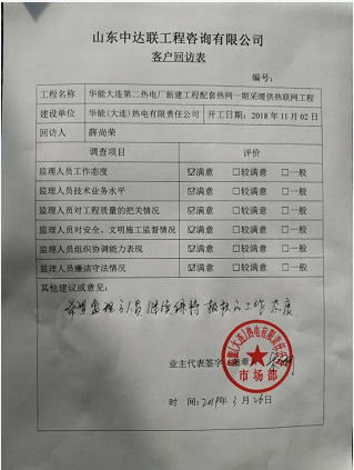 華能德州電廠工業(yè)供熱回訪表