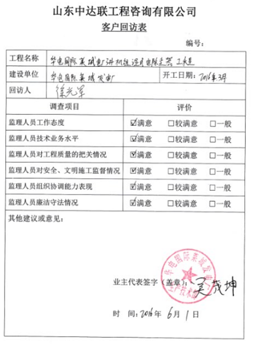 武邑風(fēng)電項(xiàng)目客戶回訪表
