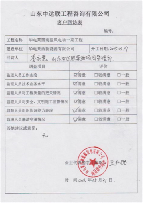 云南華電鎮(zhèn)雄電廠超低排放改造項目客戶回訪表