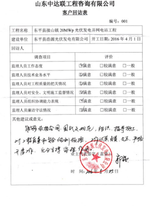 湘東灰場(chǎng)光伏項(xiàng)目客戶(hù)回訪表